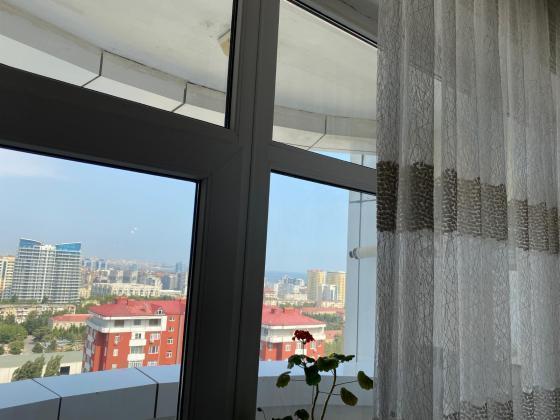 8/16mərtəbə,3 otaq,106 kv, əla təmirli,iki balkonu var, 24 saat mühafizə, yeraltı dayanacaq, çıxarış, geniş baglı həyəti, həyətində futbol meydançası, usaqlar...